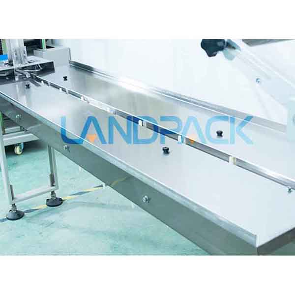 該款百潔布包裝機采用人工進行物料的投放,工作流程是:操作人員將需要包裝的百潔布、洗碗布、抹布等產品放到包裝機的托盤傳送帶當中,傳送帶把物料自動的輸送到包裝當中,經過卷膜、打碼、封口、切斷等環節完成整個包裝過程。該機也可以對接生產線進行使用。